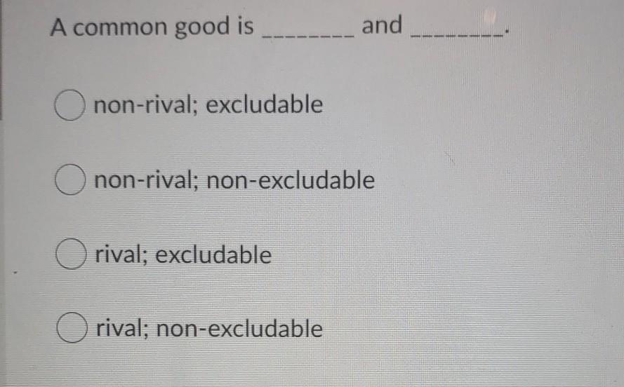 Solved A common good is and non-rival; excludable ; | Chegg.com