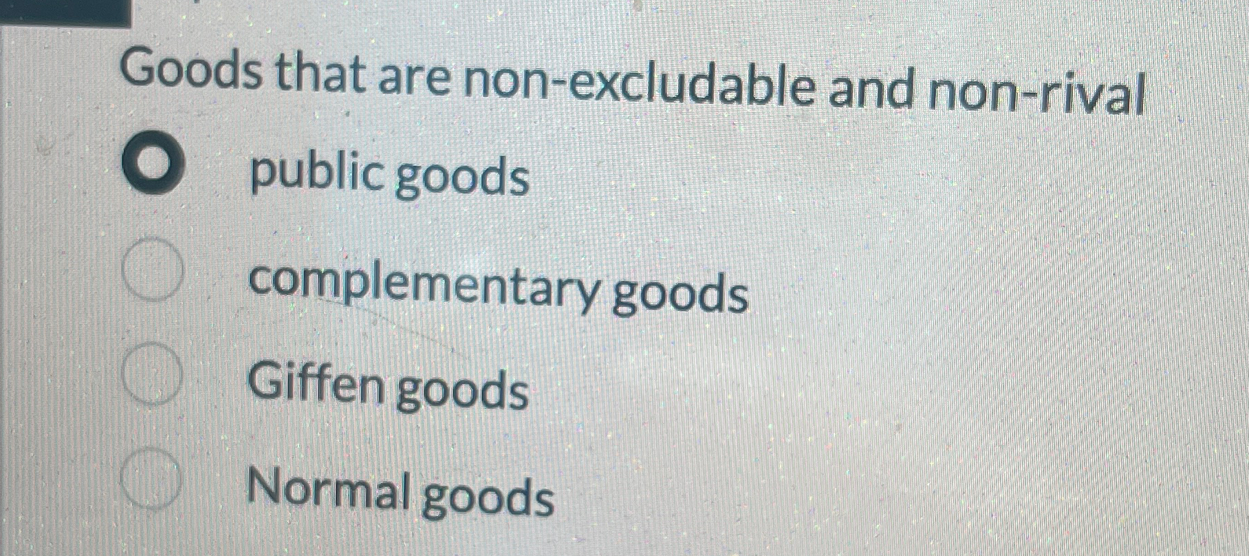 Solved A good that is non-rival and non-excludable is called | Chegg.com