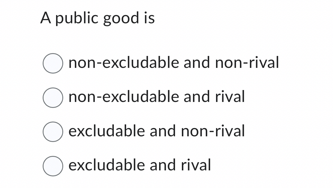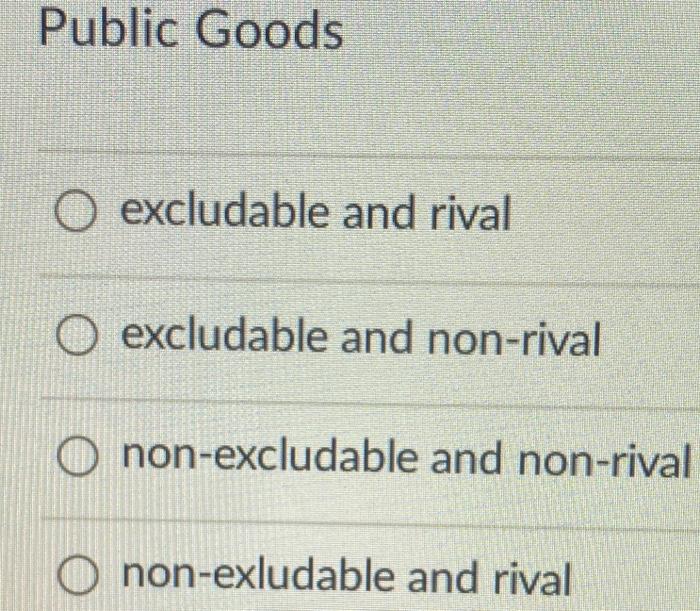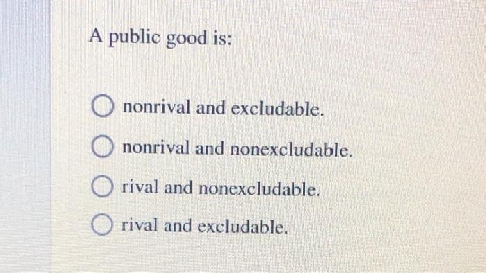 Solved A public good is: nonrival and excludable. nonrival | Chegg.com