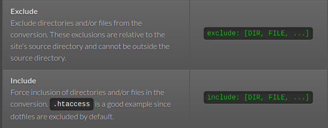 Consider adding `include` and `exclude` parameters to configuration ...