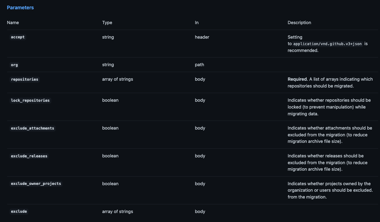 Add description to exclude parameter for Start an organization ...