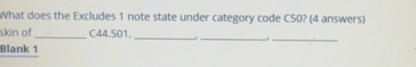 Solved: What does the Excludes 1 note state under category code C50? (4 ...