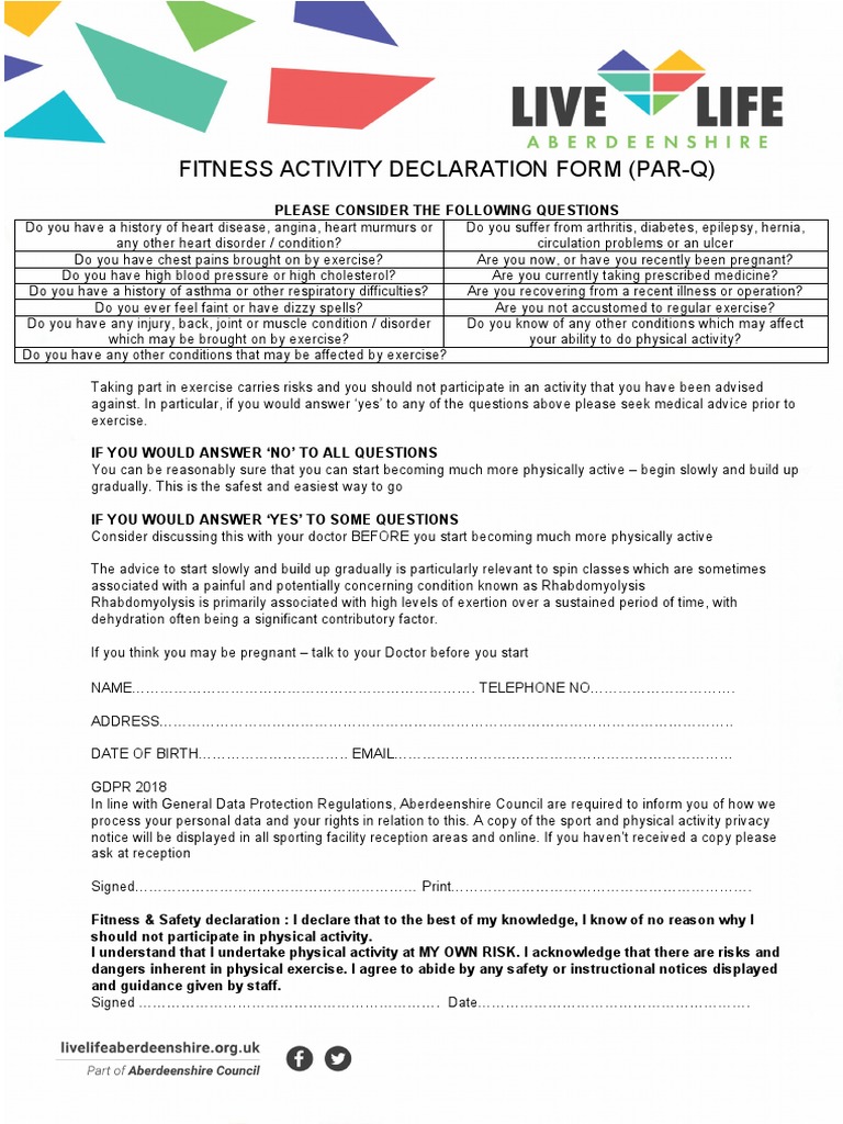 Fitness Activity Declaration Form (Par-Q) | PDF | Heart | Health Care