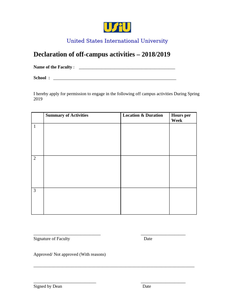 Off-Campus Activity Declaration Form | PDF
