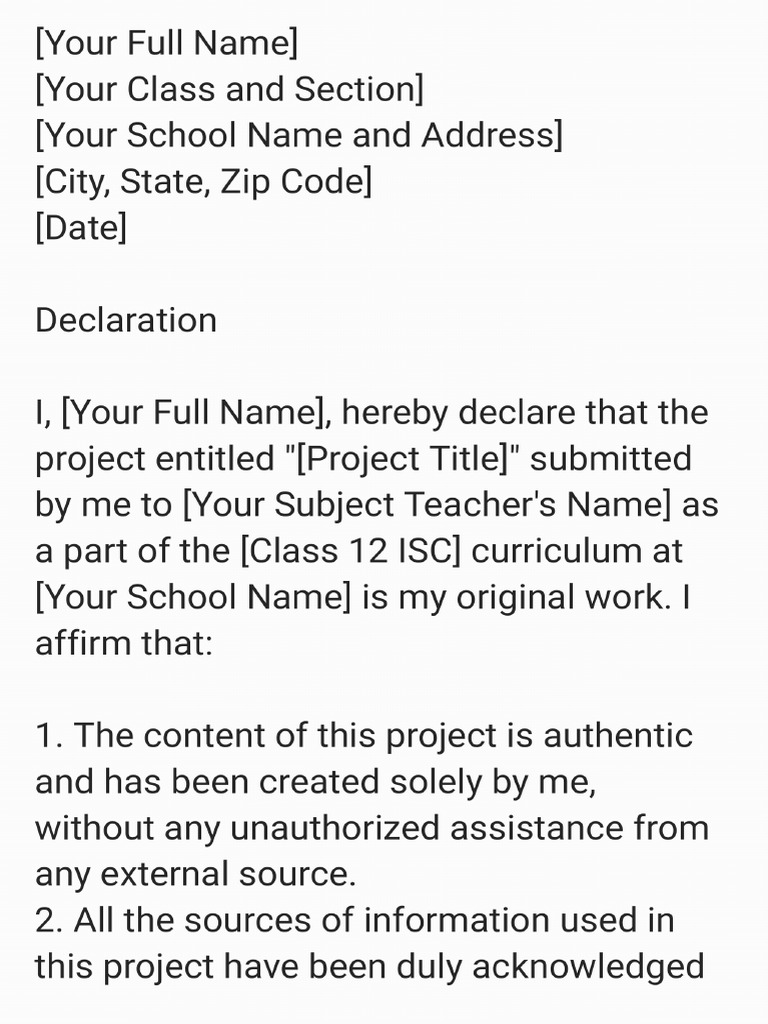 Free Declaration for Project Template to Edit Online