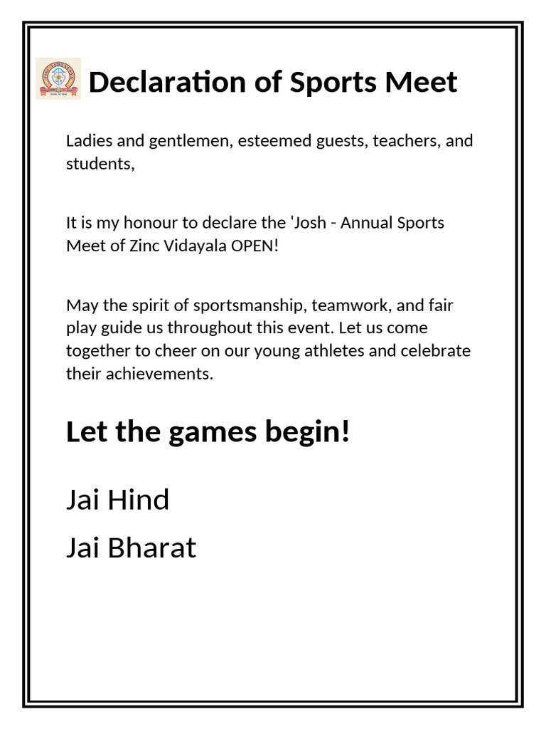 Declaration | PDF | Sports & Recreation | Social Science