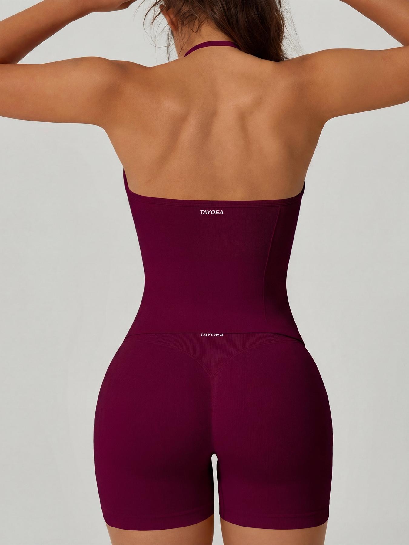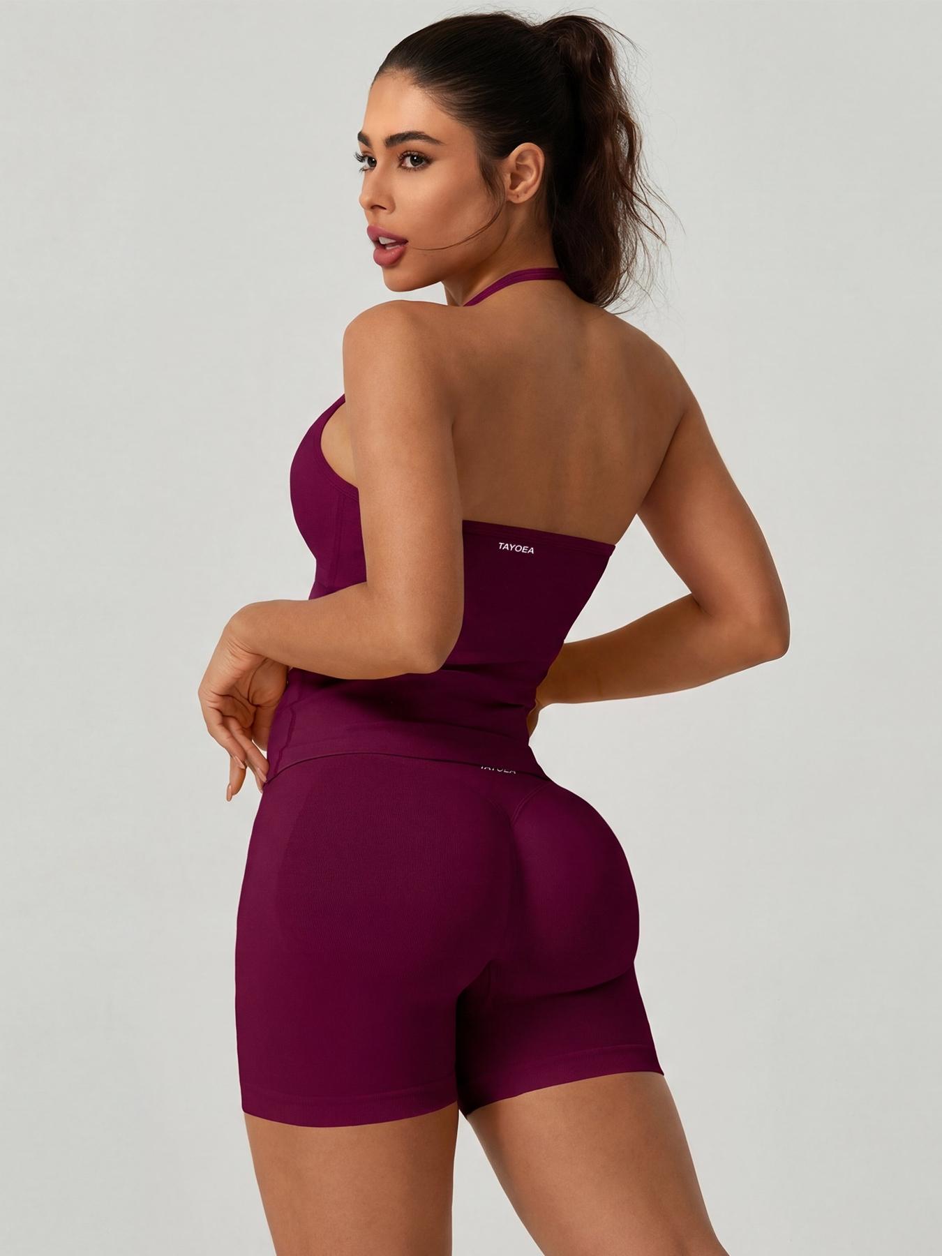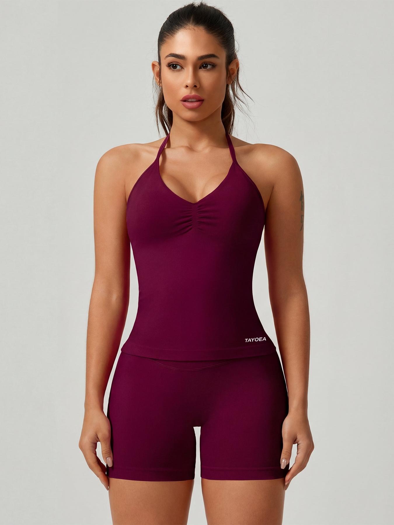 Tayoea Women's 2-Piece V-Neck Sporty Yoga Set, Breathable Seamless Top ...