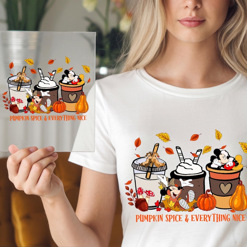 Cute Mickey Minnie Mouse Pumpkin Spice Everything Nice Autumn Leaves ...