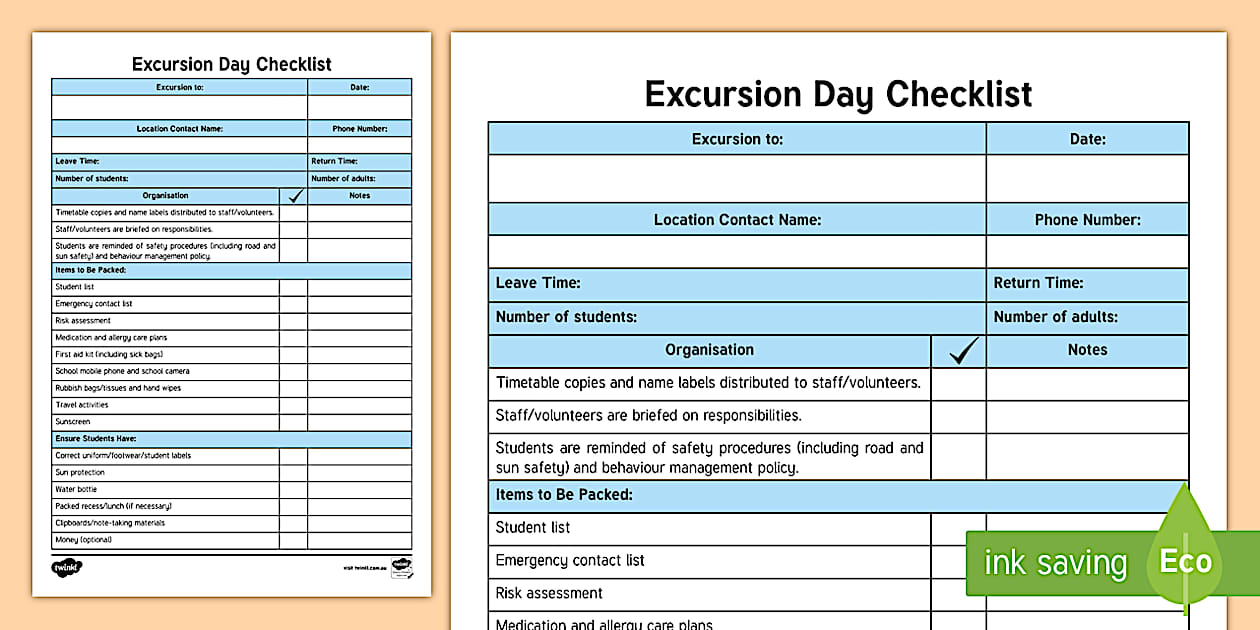 Excursion Day Checklist | Excursion Day | Twinkl - Twinkl