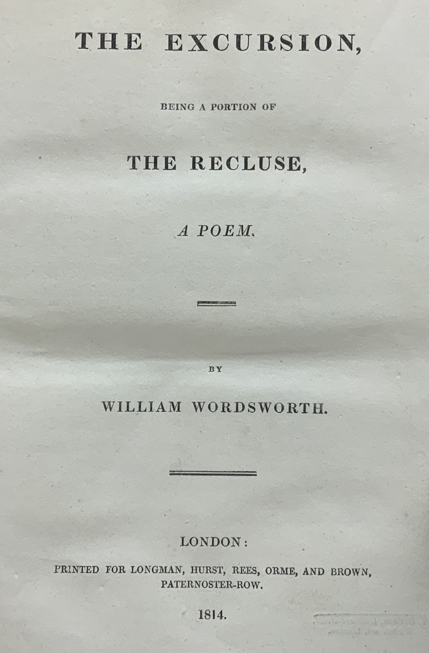 The Excursion, Being A Portion Of The Recluse, A Poem by WORDSWORTH ...