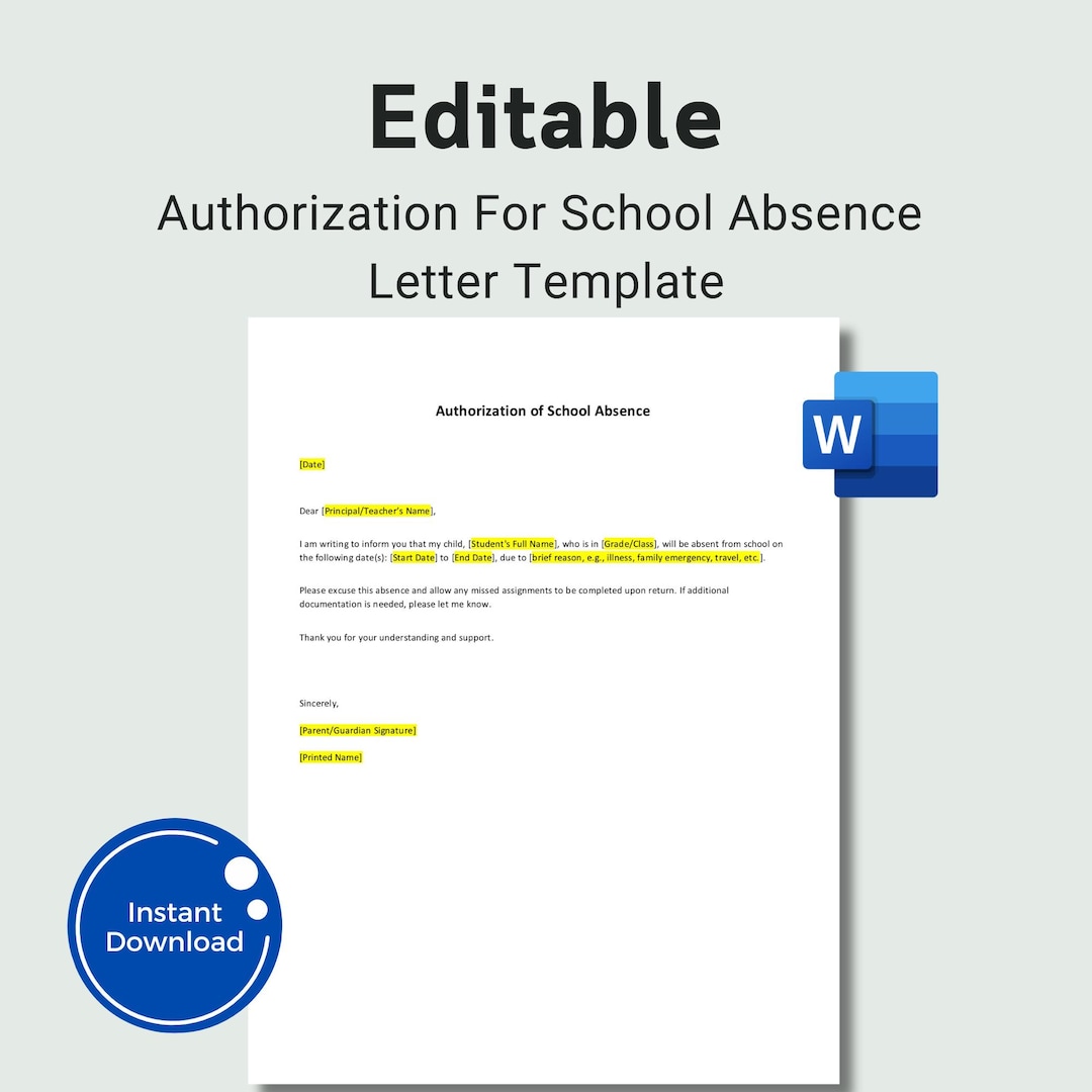 Editable School Absence Letter Template: Parent Excuse Note (word File ...