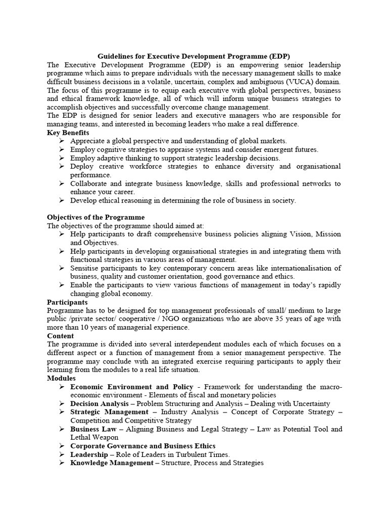Executive Development Programme (Edp) | PDF