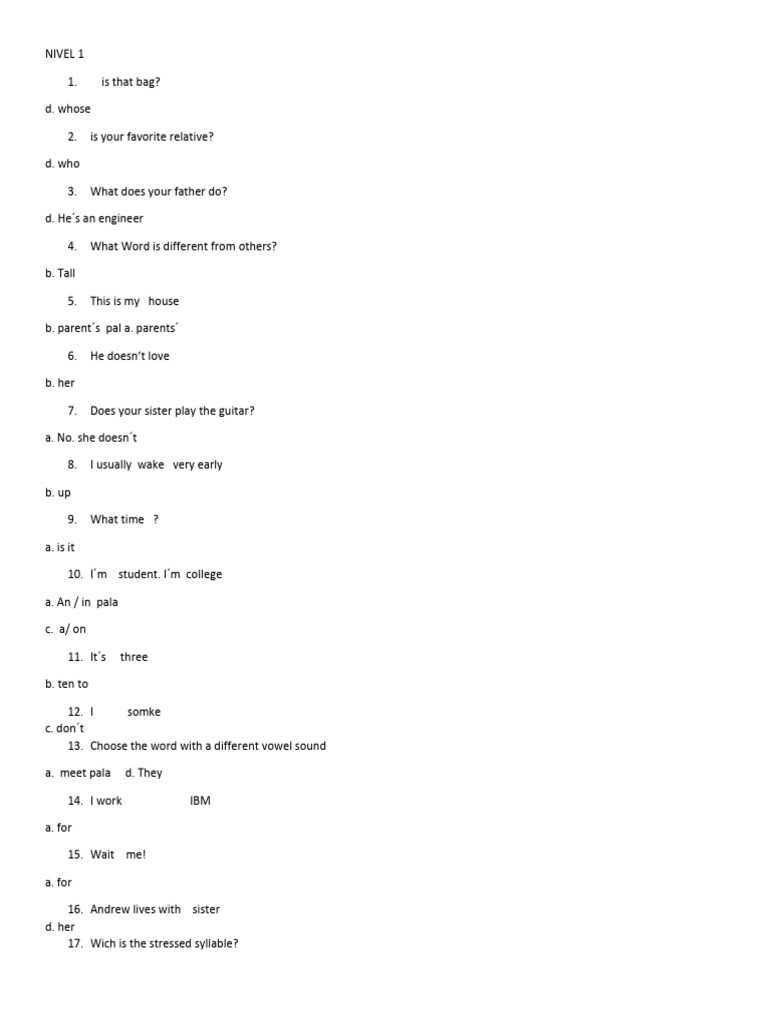 Examples of exam questions - EXAMPLES OF EXAM QUESTIONS Lesson 1 ...