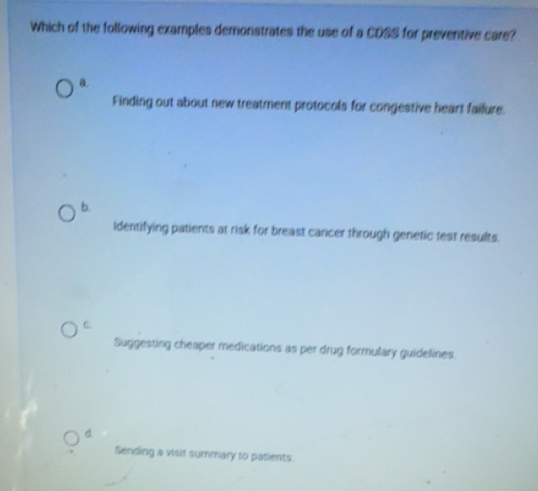 Solved: Which of the following examples demonstrates the use of a CDSS ...
