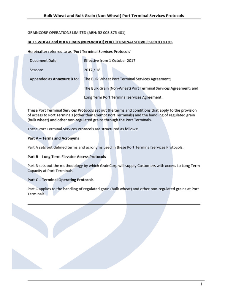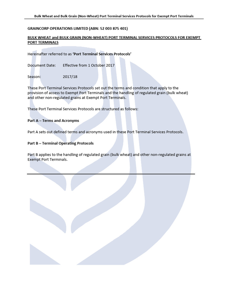Exempt Port Terminal Grain Handling Protocols | PDF | Tonnage | Port
