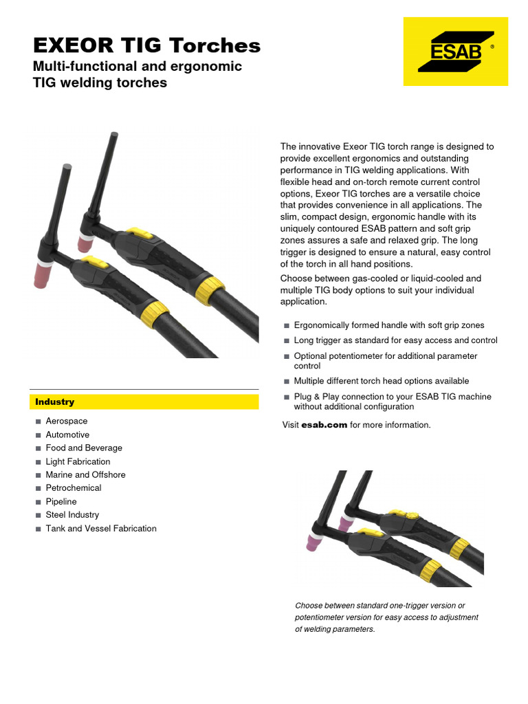 The Exeor TIG torch family has arrived. With air-cooled SR-9 & SR-17 ...