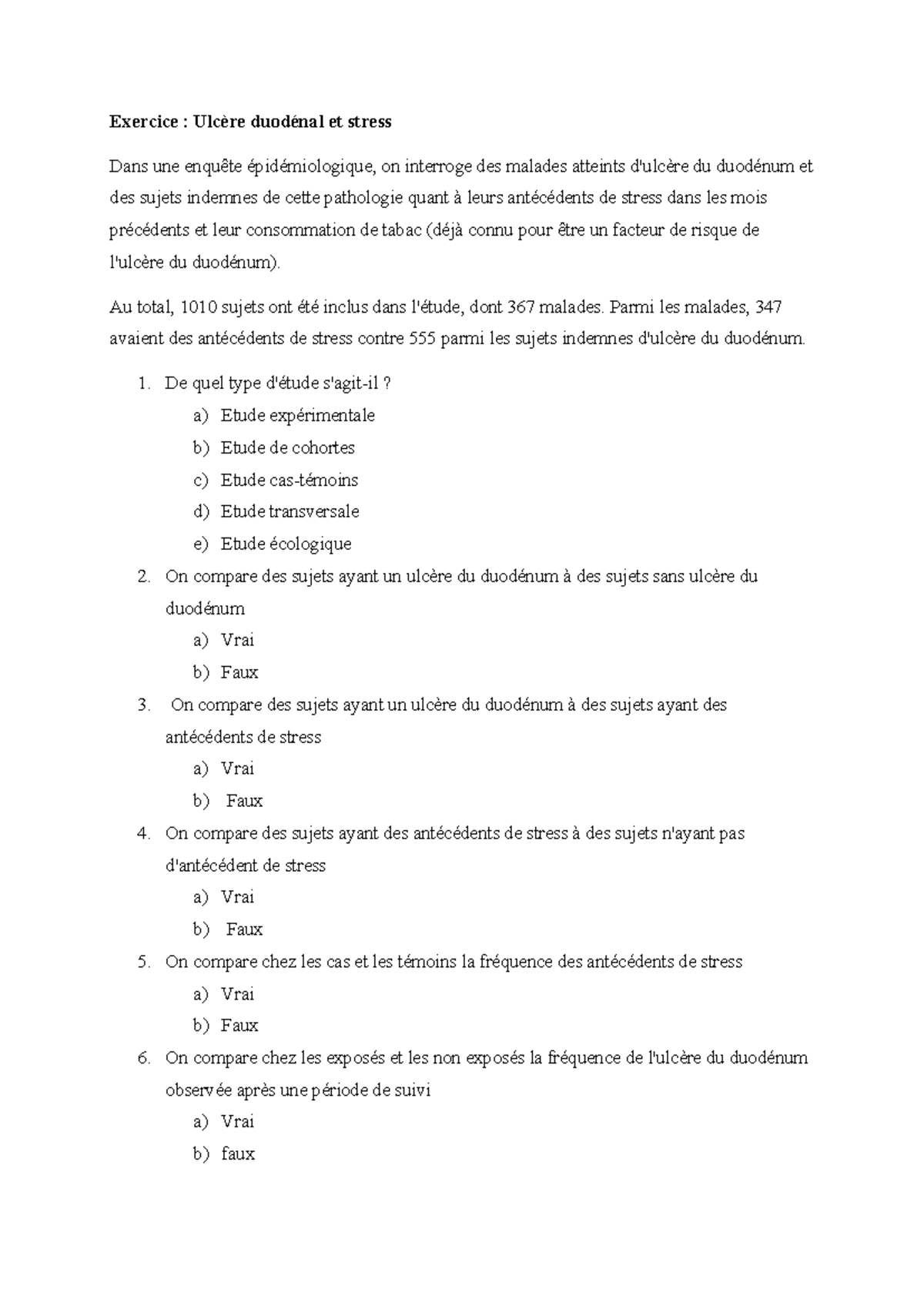 Exercice # 1 - homework to help for final exam - Exercice : Ulcère ...