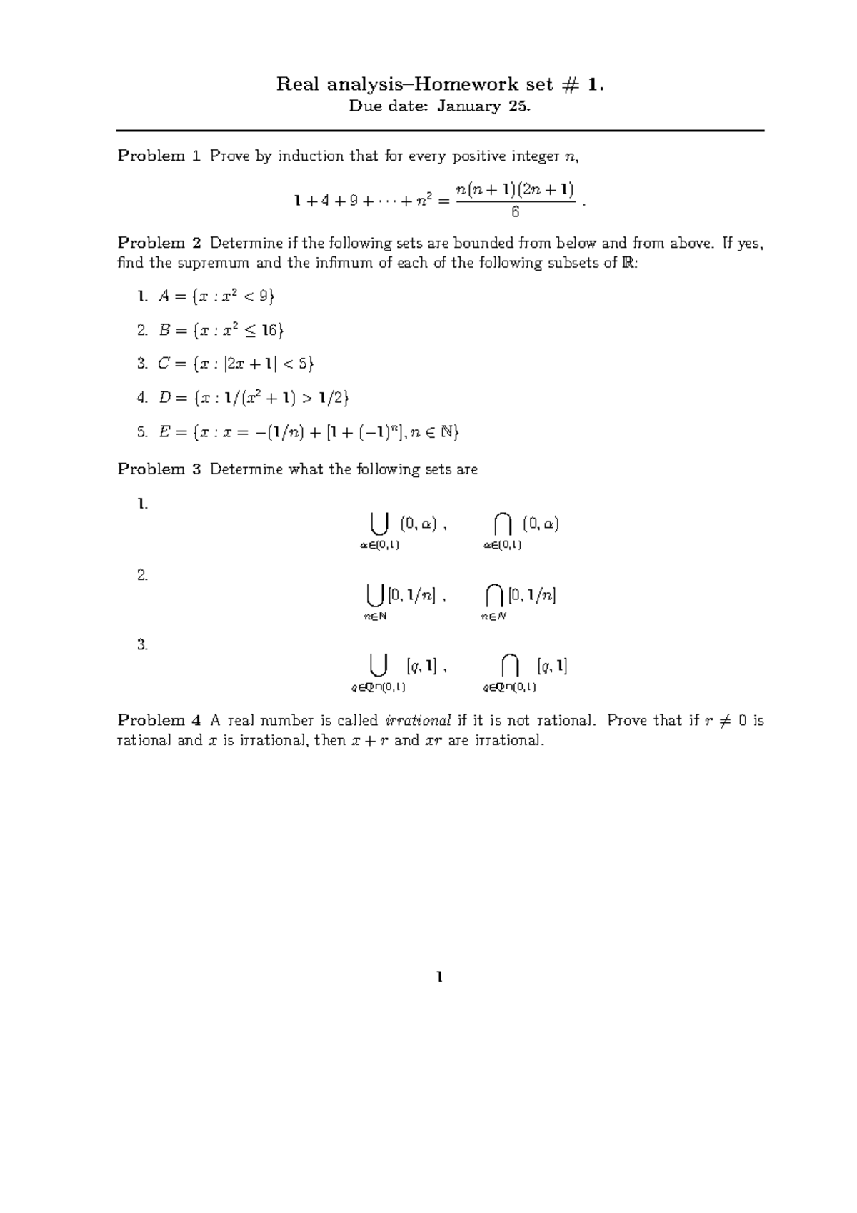 Set1 - exercices - Real analysis–Homework set # 1. Due date: January 25 ...