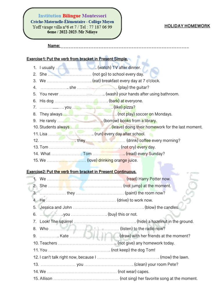 Homework Exercises 3 - ESL worksheet by wendyharling