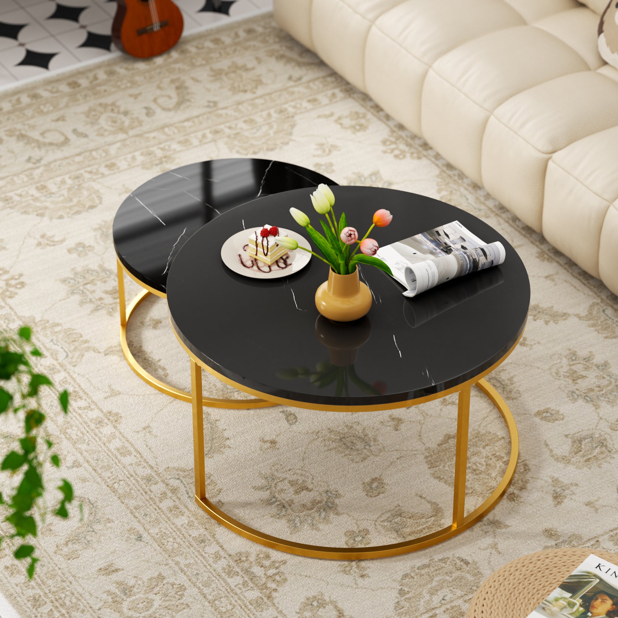 Table basse gigogne ronde, lot de 2, table basse gigogne noir, cadre en ...