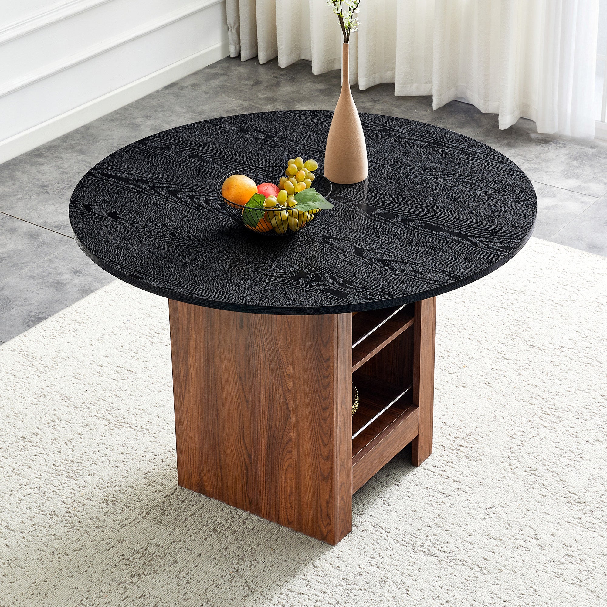 Table à manger - Ronde avec compartiments de rangement - MDF et Métal ...