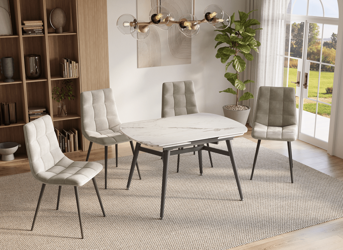 Ensemble table à manger 140cm avec 6 chaises grises OSKAR | Leroy Merlin