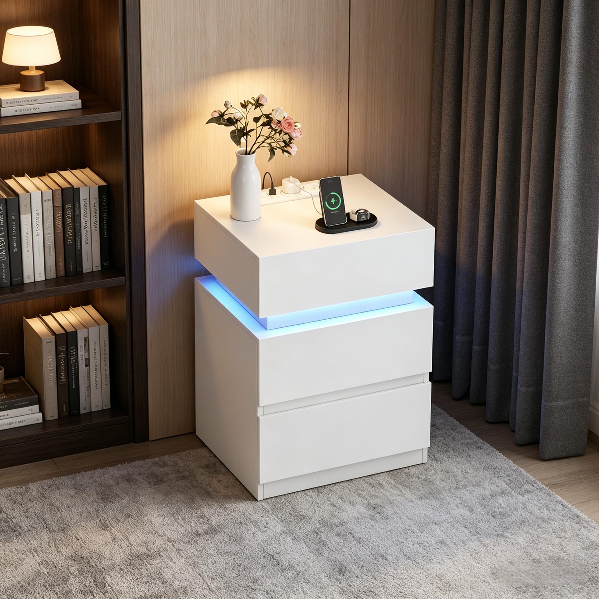 Table de chevet 58x38x64 cm, 3 tiroirs spacieux, glissières à fermeture ...