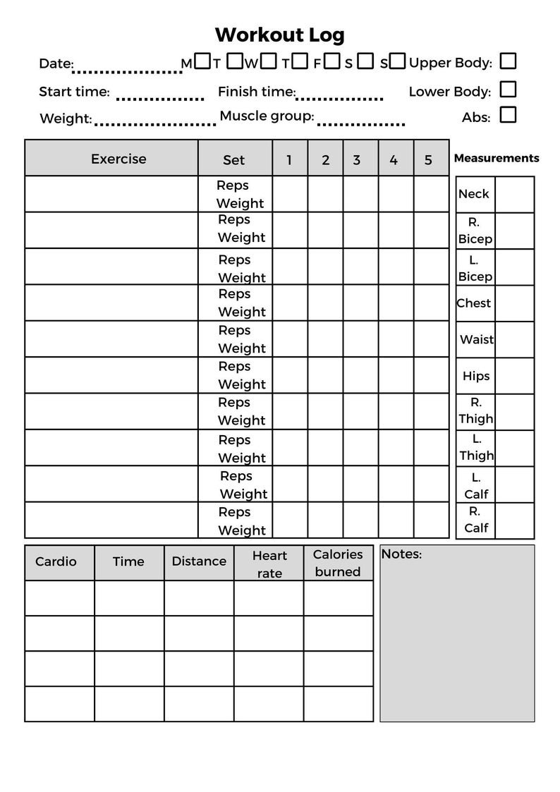 Workout Log, Exercise Log, Fitness Tracker, Weightloss, Health ...