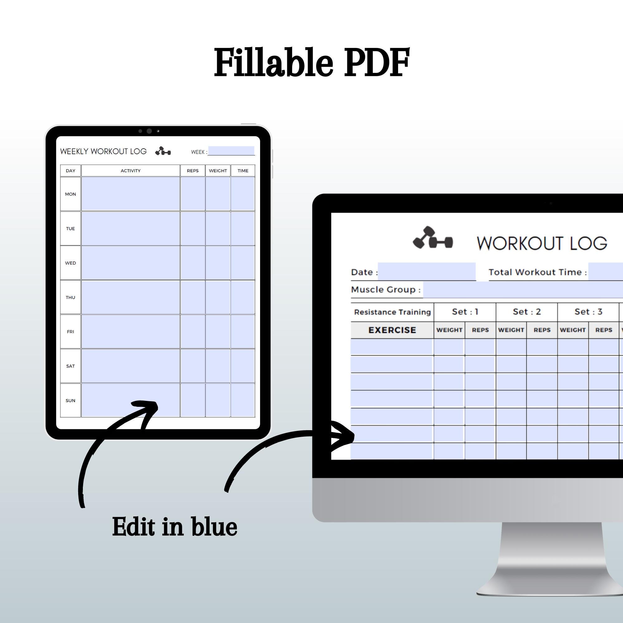 Fitness, Workout, Exercise, Log Tracker, Download PDF & JPEG Item for ...