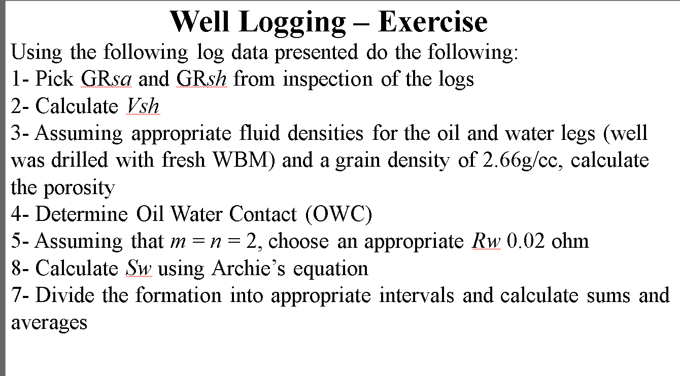 Solved Well Logging – Exercise Using the following log data | Chegg.com