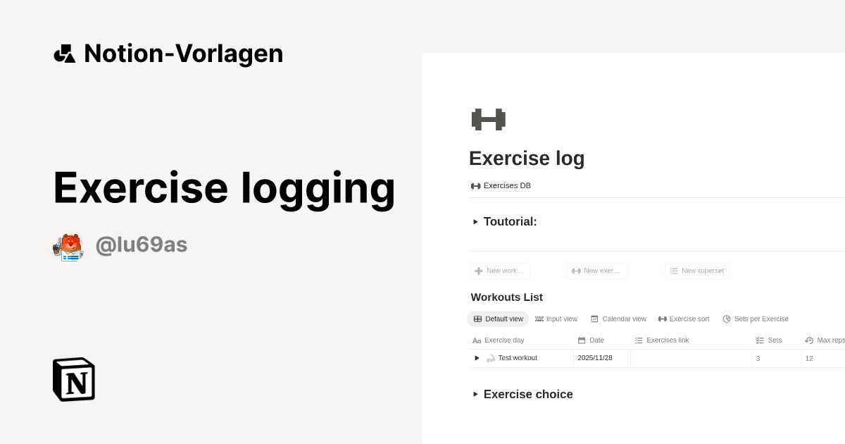 Exercise logging Vorlage von Lu69as | Notion-Marketplace
