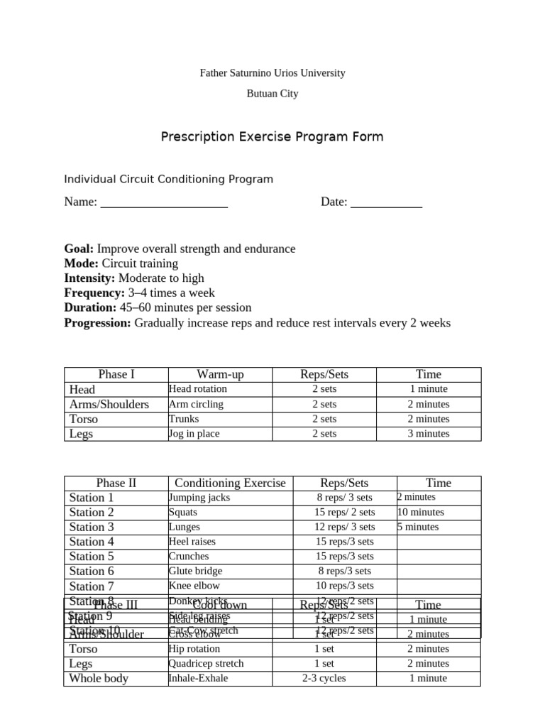 Prescription Exercise Form | PDF