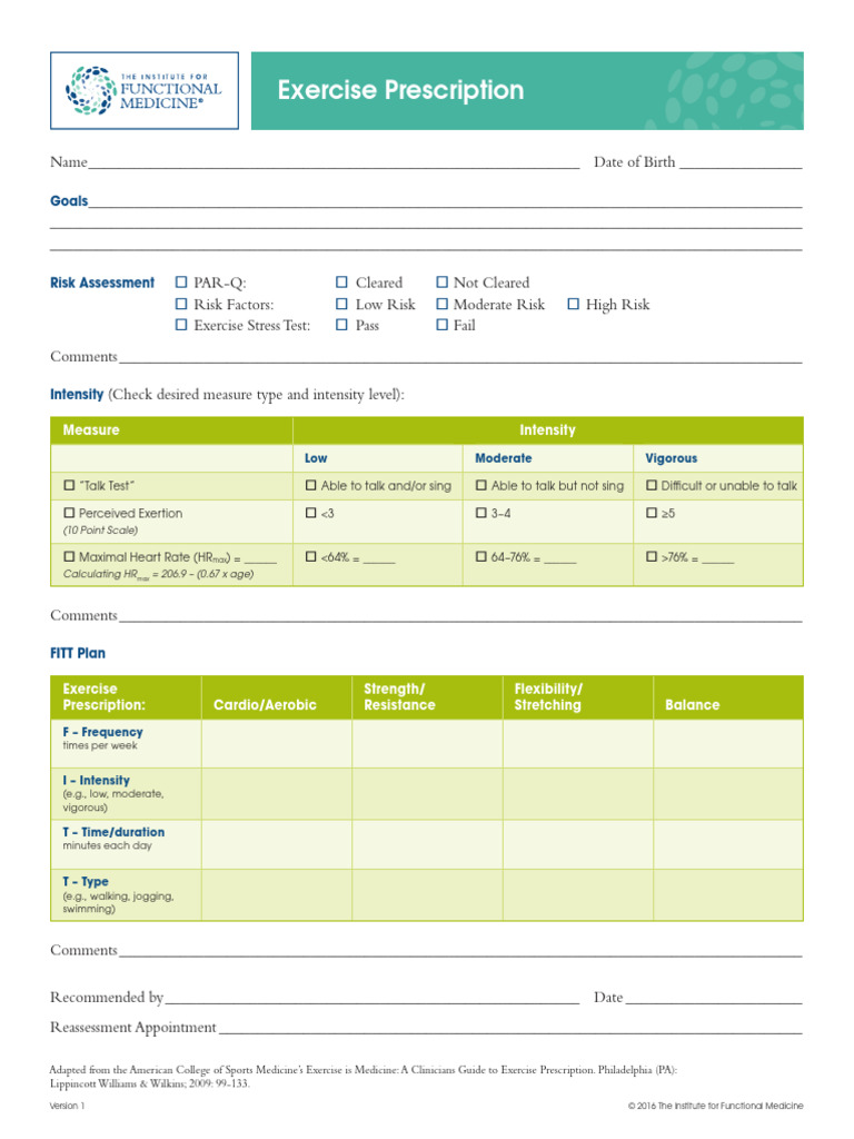 Exercise Prescription and Risk Assessment Form | PDF | Aerobic Exercise ...