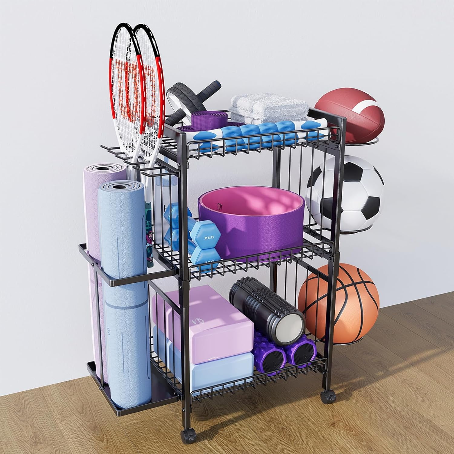 Home Gym Storage Rack, Workout Equipment Organizer, Yoga Mat Holder ...