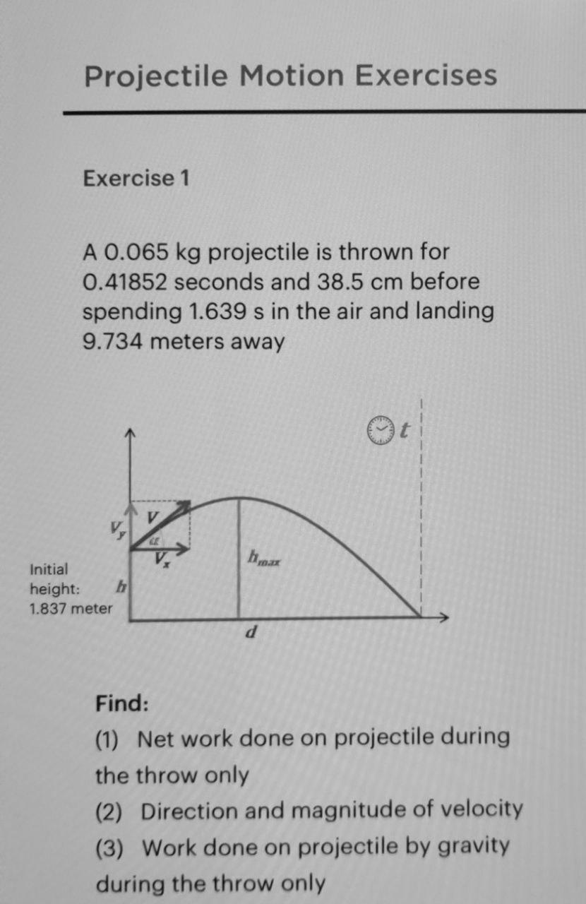Projectile Motion Physics Exercises: Projectile, Velocity, | Course Hero