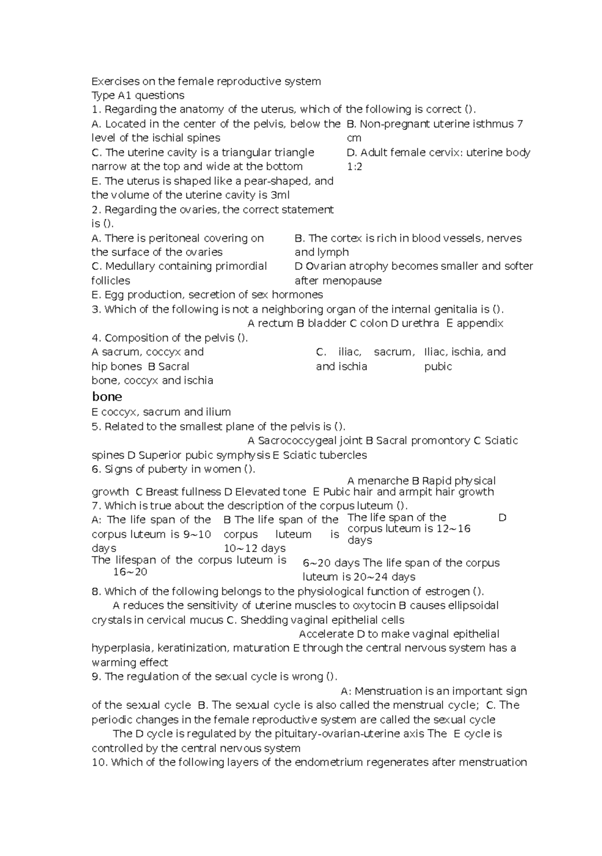 Exercises on the female reproductive system NURS221 - Exercises on the ...