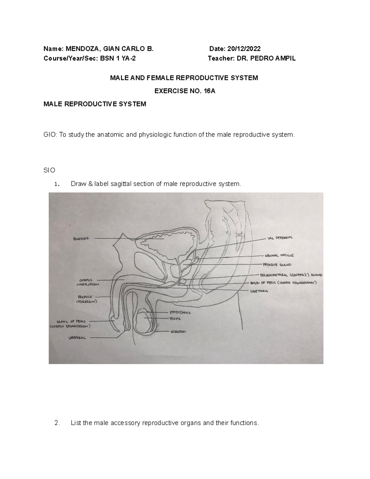 Exercise NO. 16 MALE AND Female Reproductive System - Name : Khate Anne ...