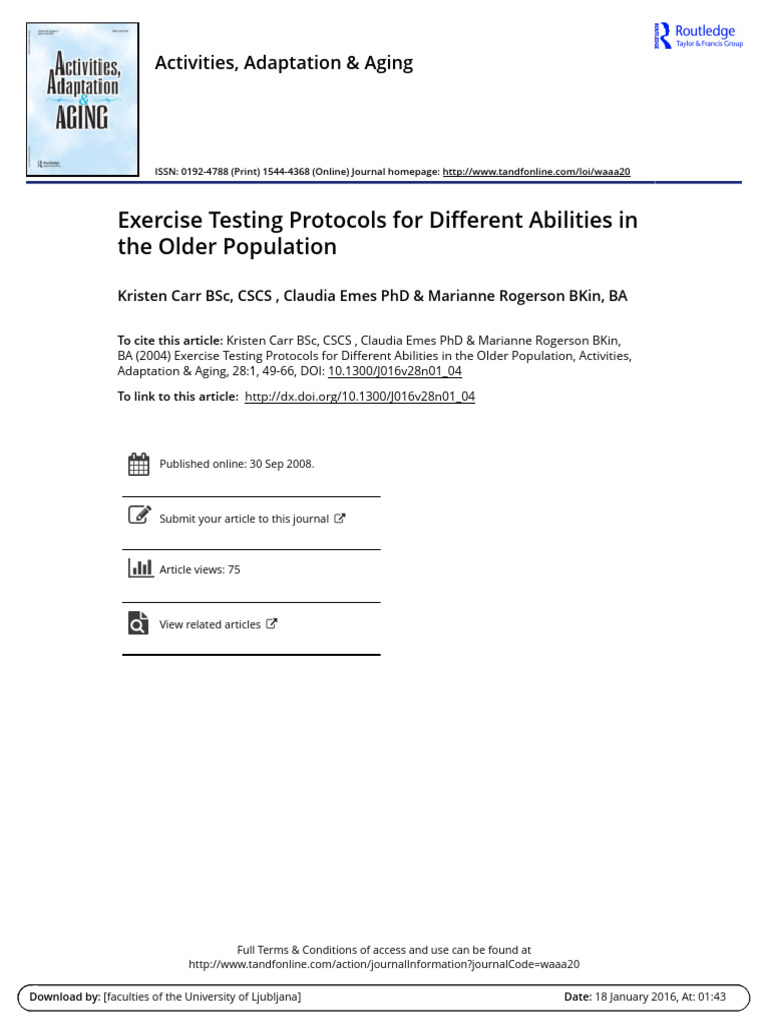 Exercise Testing Protocols For Different Abilities in The Older ...