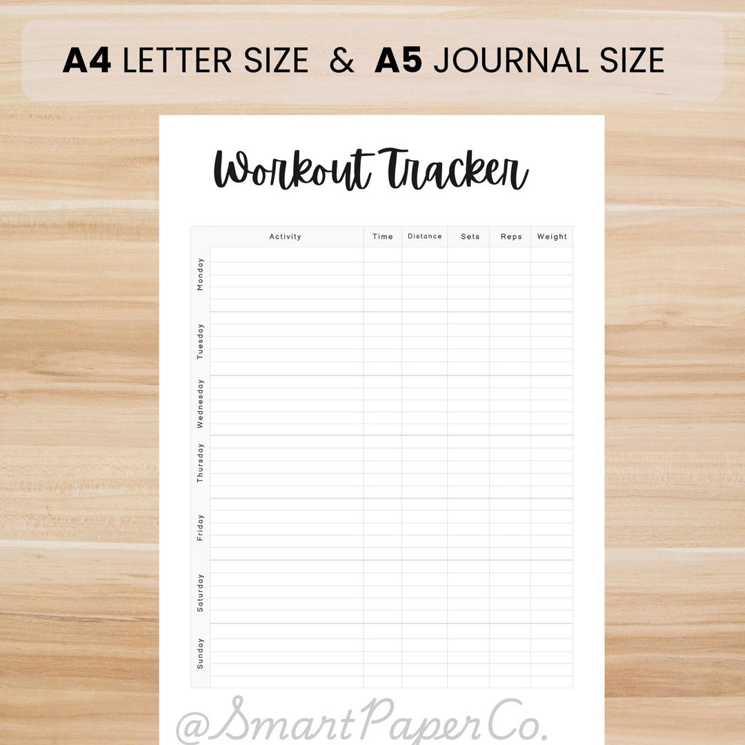 Workout Tracker - PRINTABLE Journal Page - Exercise Tracker - Fitness ...