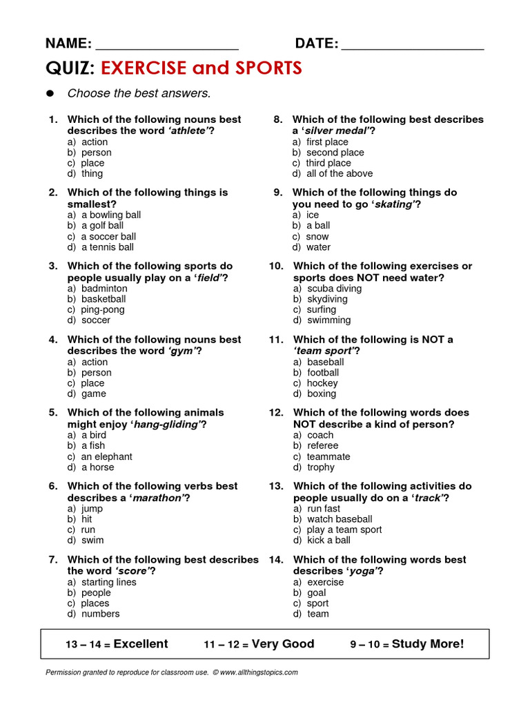 Free printable exercise quiz, Download Free printable exercise quiz png ...