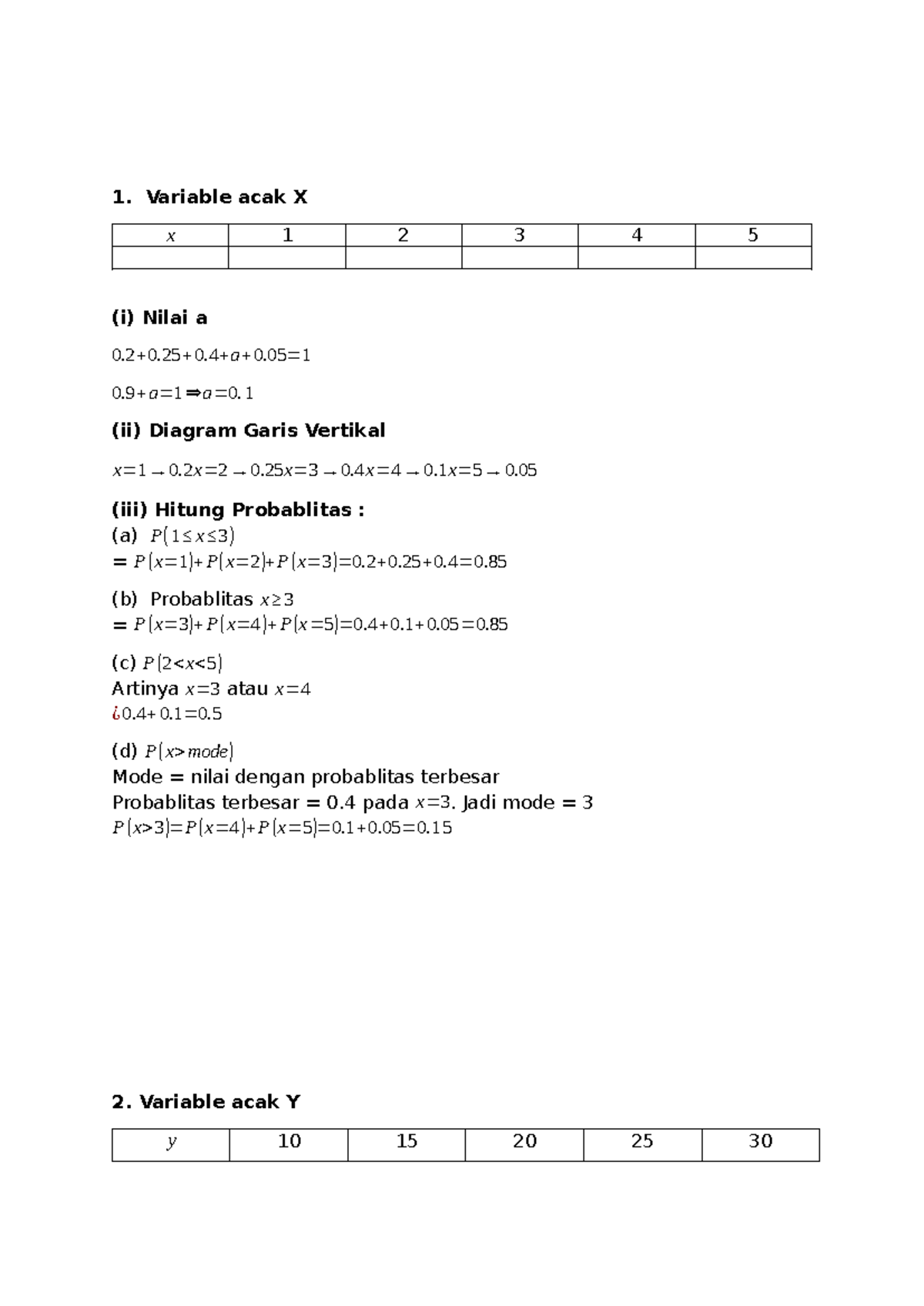Exercise 4a: Probabilitas Variabel Acak dan Distribusi - Studocu