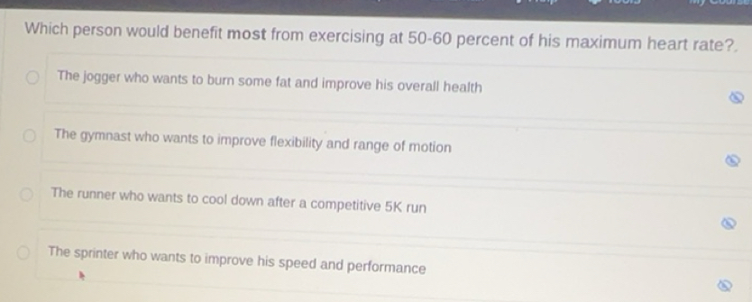 Solved: Which person would benefit most from exercising at 50-60 ...