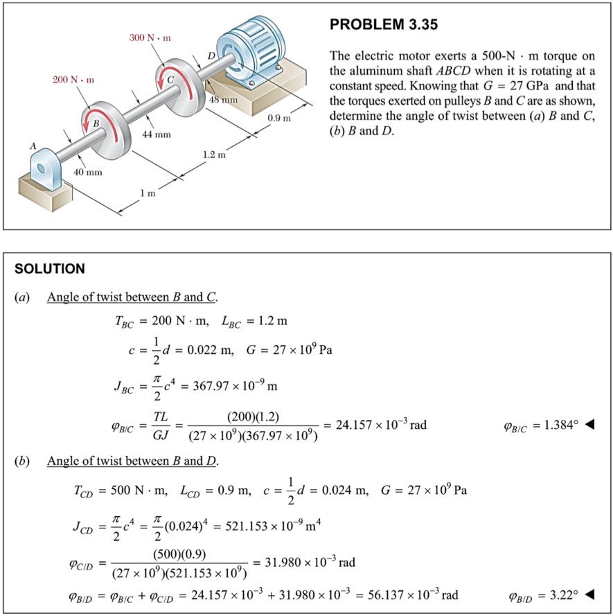PROBLEM 3.35 The electric motor exerts a 500-N·m torque on the aluminum ...