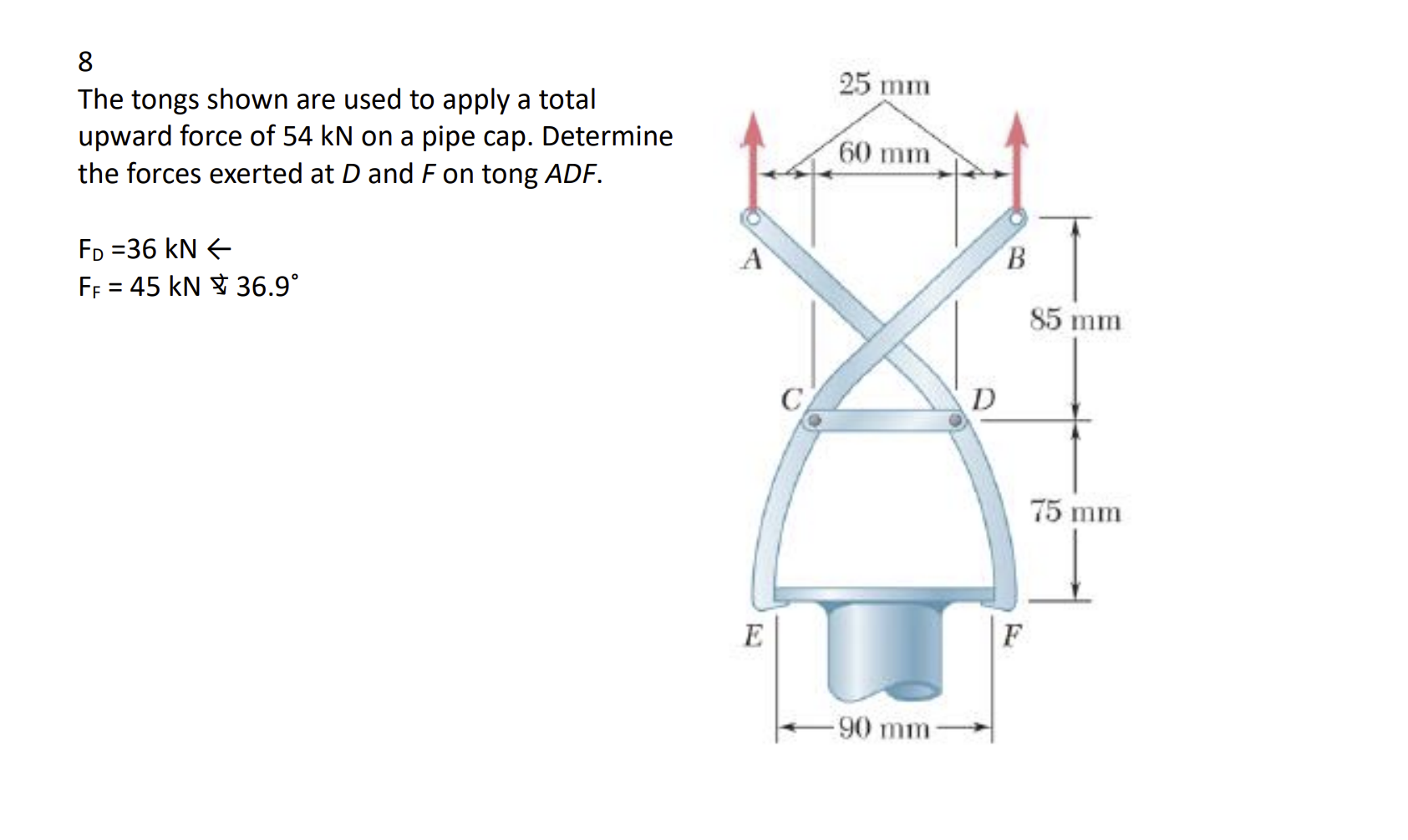Solved 8 The tongs shown are used to apply a total upward | Chegg.com
