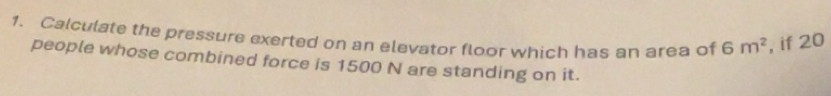 Solved: Calculate the pressure exerted on an elevator floor which has ...