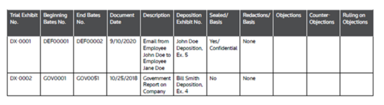 Exhibit List For Trial Example at Emma Pitt blog