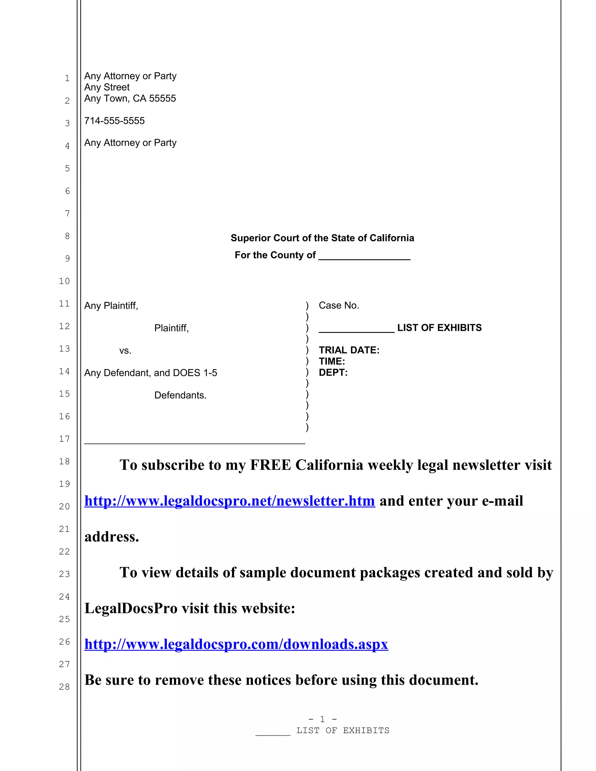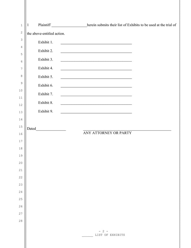 Sample trial exhibit list for California