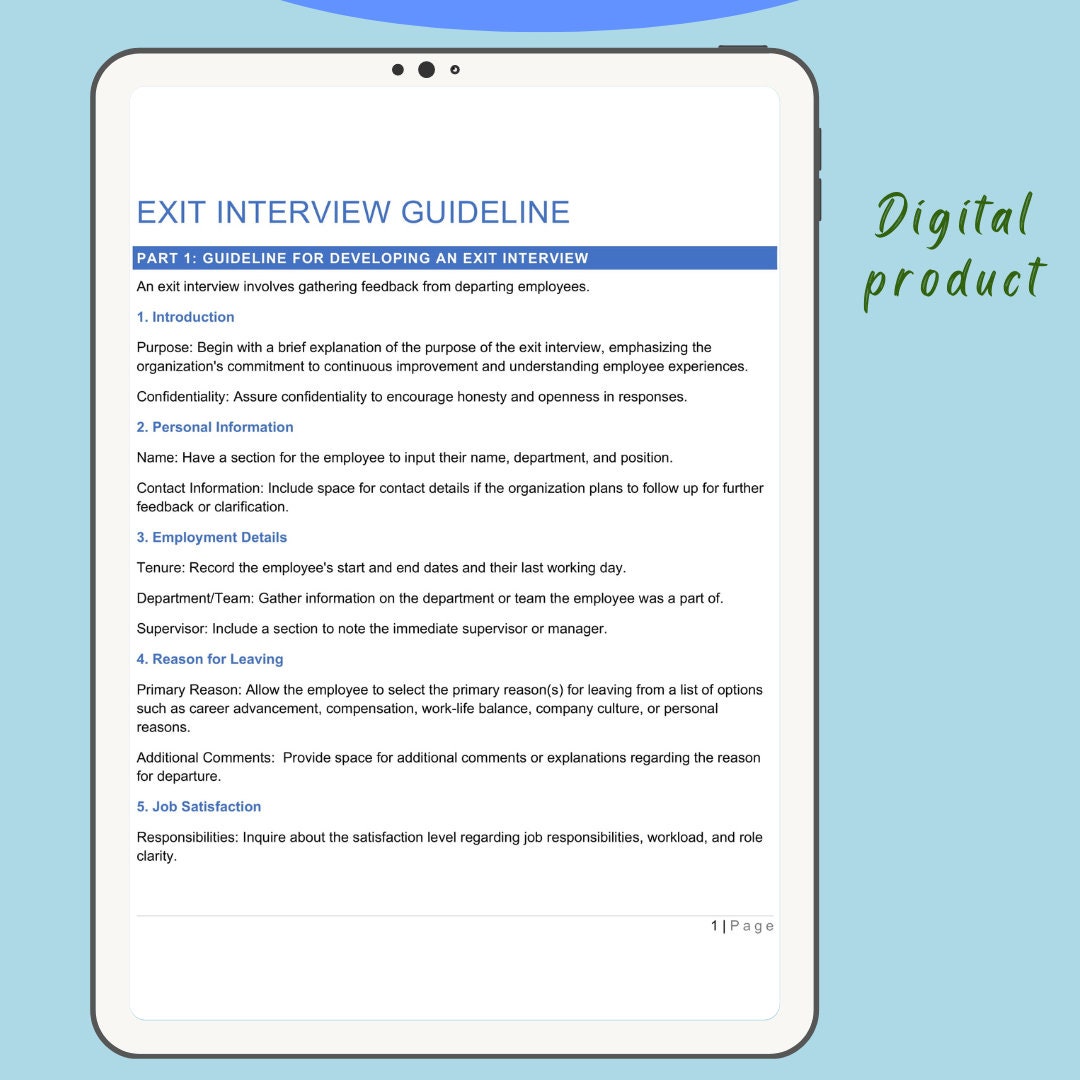 Exit Interview Guideline Printable Exit Interview Best Practices Exit ...