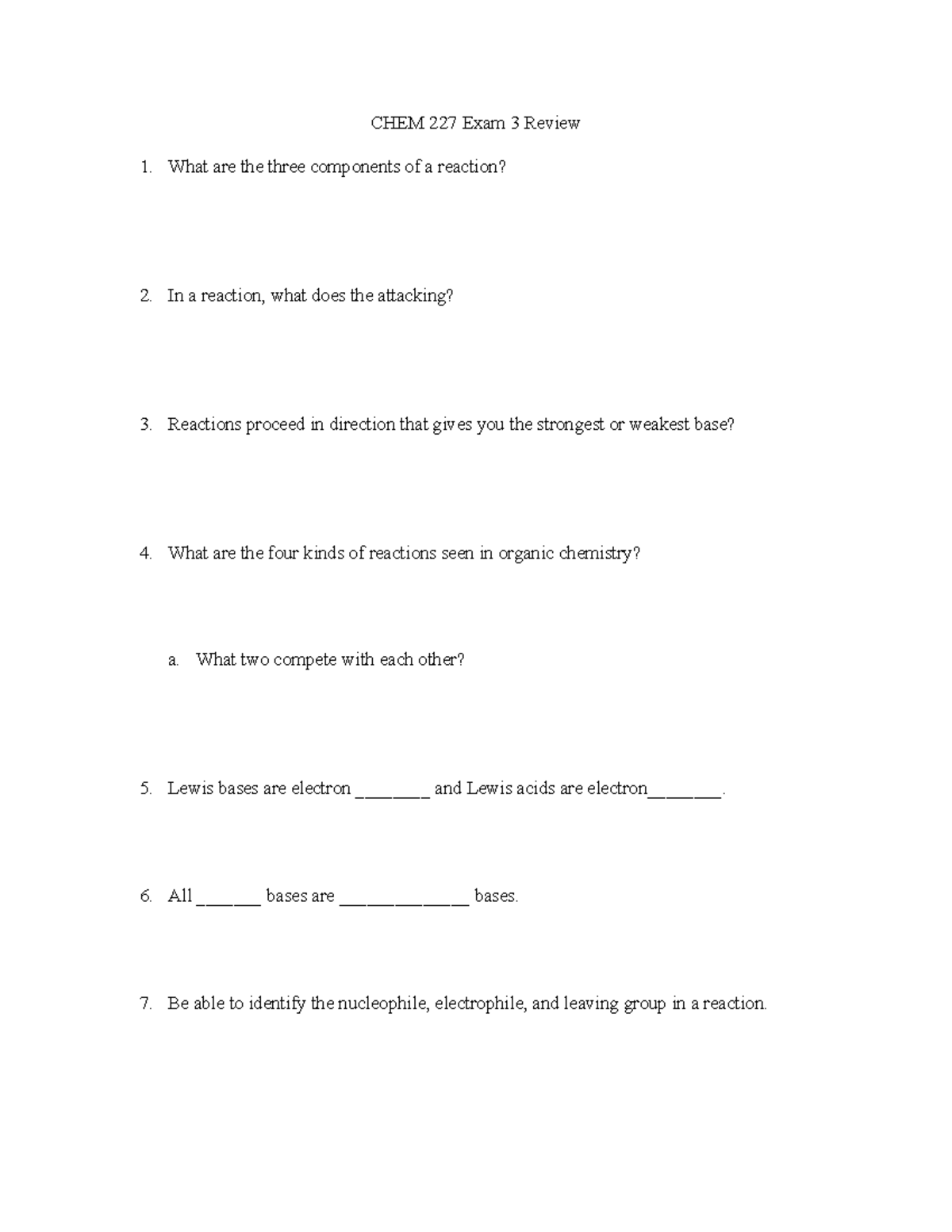 CHEM 227 Exam 3 Review - Key Concepts and Practice Questions - Studocu
