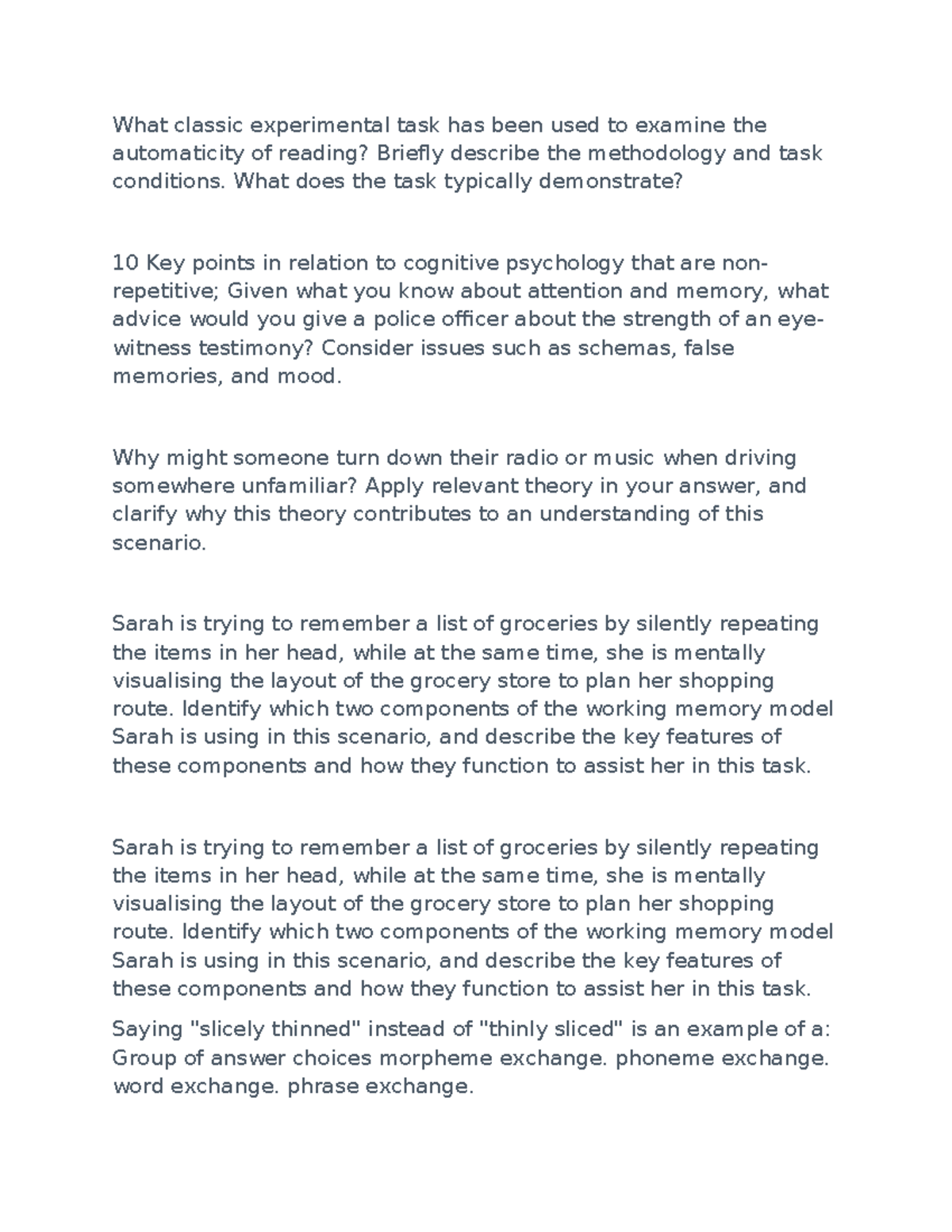 Cognitive Psychology Exam Questions 2025: Key Concepts & Theories - Studocu